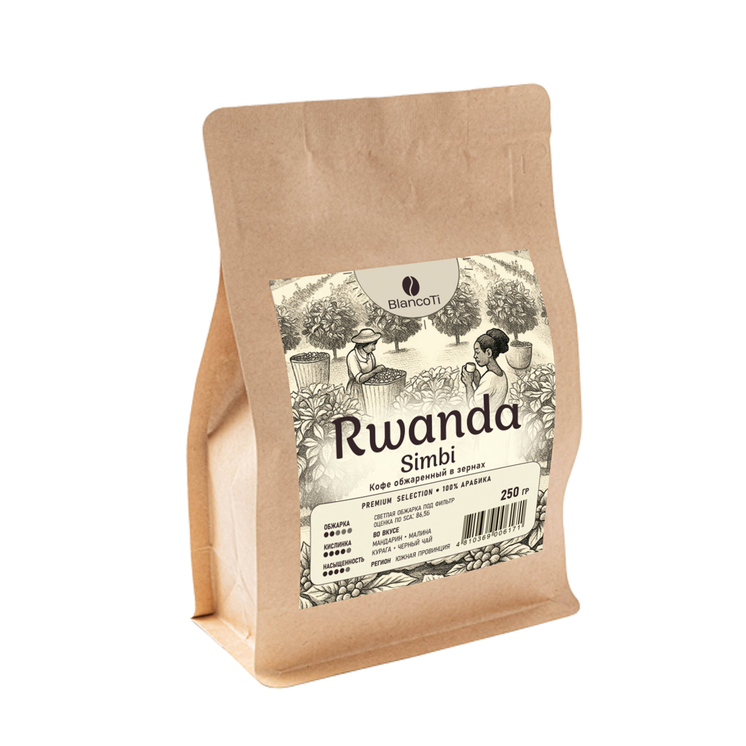 Мы рады представить вашему суду лот, который мы называем «звездой» нашей коллекции — Rwanda Simbi. Этот кофе был отобран в рамках Эксклюзивной линейки BlancoTi как образец безупречного баланса и чистоты, которые способна подарить только высокогорная Руанда.